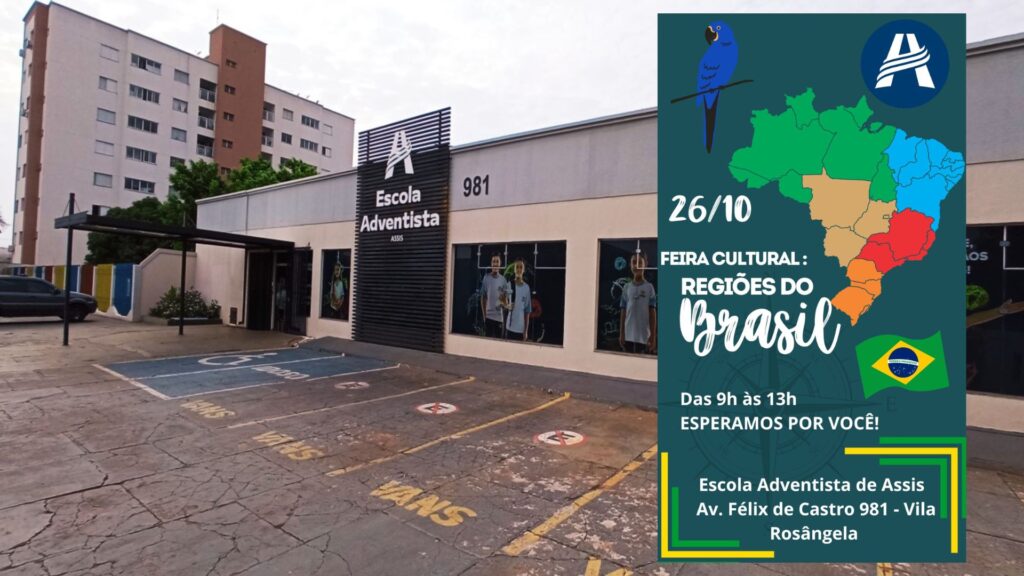 Evento une cultura, aprendizado e diversão em uma programação aberta à comunidade. A Escola Adventista de Assis promove neste domingo (26), das 9h às 13h, a Feira das Regiões, um evento educativo e cultural que promete movimentar a cidade. A programação reúne exposições, atividades recreativas e apresentações temáticas sobre as cinco regiões do Brasil. 📱 […]