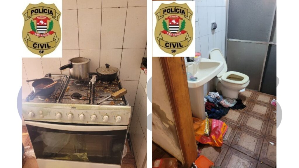 A autoridade policial constatou que as condições de higiene eram incompatíveis com a criação de qualquer criança, colocando em risco a integridade física e psicológica das vítimas.