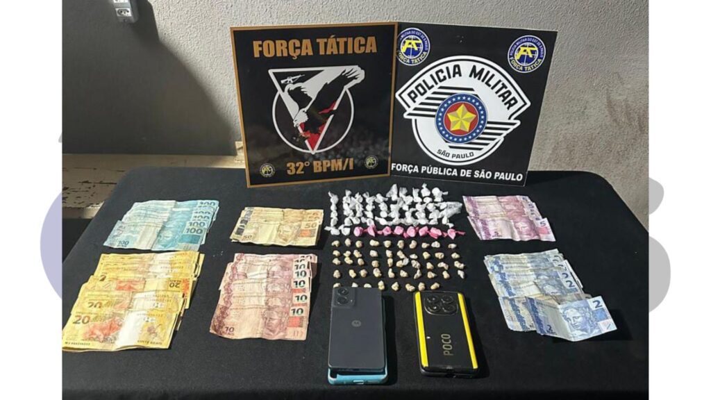 A ocorrência foi apresentada na Central de Polícia Judiciária (CPJ). O saldo da operação incluiu a apreensão de 0,043 kg de cocaína, 0,029 kg de crack, três celulares e R$ 3.101,40 em espécie. Foi elaborado o Auto de Prisão em Flagrante Delito (APFD) por tráfico de drogas.